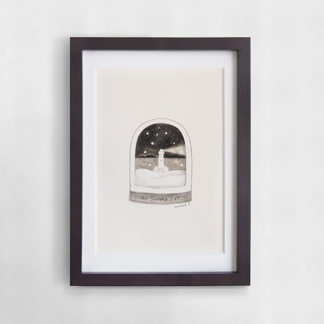 一点物/原画/額装込み 冬のお部屋に飾る、小さな絵。 スノードームの中には 誰かの思い出のような、夢のような 小さな景色が浮かびます。 イラストはイラストレーターの高橋マサエが 日本の絵の具・顔彩で描いた1点物。 モノクロームの作品が 静かに、あたたかく冬の時間に寄り添います。 クリスマスの贈り物にもどうぞ。 *額装済/シンプルなダークブラウンの木製額縁に額装した状態でお届けします。 ——————— <1点物> 【作者】高橋マサエ Masae Takahashi 【素材】紙、顔彩、鉛筆 【サイズ】 原画(マット込み):B5(W182mm x H257mm) 額縁(外寸):W275mm x H200mm x D24mm 額縁:木製/色 ダークブラウン/UVカットアクリル/紐付き 重量 約470g 【制作年】2025 ・1点物のため、購入後のキャンセル、返品は受け付けておりません。 ・額装した状態で、箱に入れて発送いたします。 ・撮影写真は、閲覧環境によって実際の色味と多少異なって見える場合がございます。 ——————— お取り扱いの注意 ・高温、多湿の場所への設置や保管はできるだけ避けてください。作品の劣化、紙の反りなどの原因になります。 ・額装にはUVカットアクリルを使用していますが 強い直射日光のあたる場所への長期間の設置は、作品の色褪せ・劣化の原因となる可能性がありますのでご注意ください。 原画ご購入後の所有権、著作権についての留意事項 https://masaet.base.shop/p/00001 ——————— 【作者】 高橋マサエ Masae Takahashi 山口県生まれ。香川県高松市在住のイラストレーター。 「生活の小さな幸せを描く」をテーマに、日常の風景、人、動物を温かみのあるタッチで描く。作品を見た人が、好きなものを再認識したり、日々を心地よく過ごせるように、との思いを込めて制作している。 国内外の広告、雑誌、書籍などへイラストレーションを提供するほか、瀬戸内うまれのクリエイティブユニット「つつ、」のメンバーとしても活動。 主な仕事に、「旅するマグネット 香川の旅」商品イラスト、MUJI 「この冬の、コツをおくります。」(2020年)、Maruchan(アメリカの東洋水産)「The Feels」アニメーションCM(2021年)、「遠山顕のいつでも!英会話入門」NHK出版(2023年)など。趣味は散歩と料理。